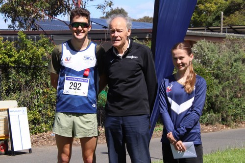 | Runners World 2023 winners Riley Coughlan and Maddison Nash with Runners World Kew proprieter Neil Ryan | Runners World 2024 winners Marcus Wakim and Char Hay with Runners World Kew proprieter Neil Ryan |